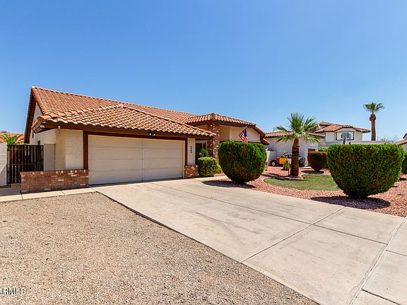 This single-level 3-bed, 2-bath gem is giving main character energy from the moment you walk in. Fresh paint? Check. Brand-new AC? You already know. Tall vaulted ceilings and wood-look floors bring the airy, modern vibes, while plantation shutters add a classic touch.The kitchen is made for aesthetic meal prep—granite counters, built-in appliances, honey oak cabinets, and a breakfast nook with a cozy bay window (hello, morning coffee spot). Family room comes complete with a fireplace for rare chilly AZ nights.Primary suite = pure comfort. Think private patio access, a soaking tub for bubble bath therapy, and a walk-in closet w/ space for your sneaker rotation and work-from-home fits.Backyard? Low-key iconic. Covered patio, easy landscaping, beautiful pool ready to be your happy place.
