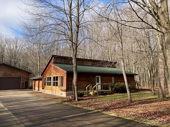 Beautiful home sitting on almost 6 acres. Dead end road. Large pole barn 30x50 all concrete floor. The home is in need of finishing. Siding is cedar. Extremely large bedrooms for a home this size.