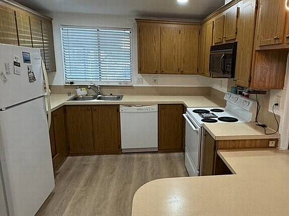 This 2 and 2 nestled in a corner lot at one of the fantastic circle and quiet streets in this community offers side by side carports, an amazing living room and plenty of closets and cabinets for storage. New laminate flooring. This is a must-see house in this resort style community!