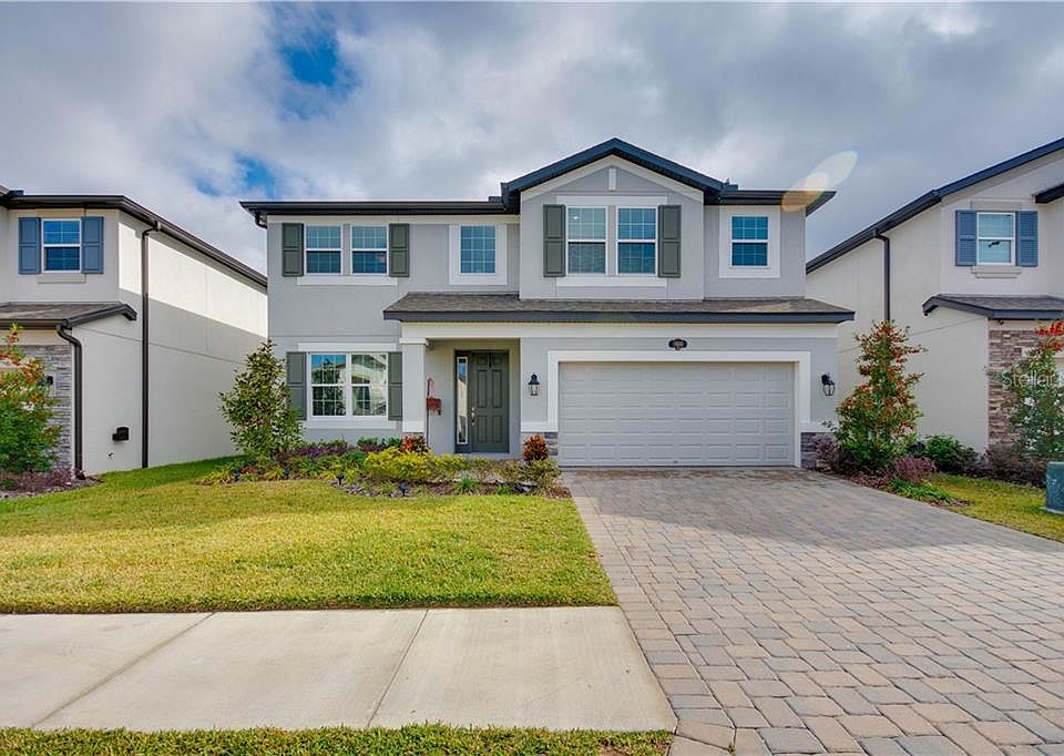 Welcome to your next home! Located in The Reserve at Long Lake Ranch, this 2019 Sonoma II floor plan, still under first year warranty, boasts two-story living with well-appointed finishes throughout. At the entrance, you are greeted by high ceilings that flood the foyer with natural light. To the left is a large formal dining room to entertain and impress your company. Leaving the dining area, you pass thru the butlers pantry and the extra large walk in panty areas. The elegant gourmet kitchen includes upgraded stainless steel appliances, built in double oven with separate cooktop, hood, 42" cabinets, quartz counter tops and large island that can easily accommodate 2-3 barstools. The kitchen / dining combo leads to the sliding glass door and onto the large L-shaped outdoor patio. For your privacy, the back yard is fence enclosed. A large laundry room with plenty of room for storage is located off of the entranceway. The first floor living room along with kitchen, dining room, and laundry room are all tiled. One bedroom and large bathroom with huge walk in shower and two bowl vanity is located on the first floor. Formerly known as a mother-in-law suite, this private bedroom and bathroom are desirable for guests or a family member needing privacy. There is also a second bathroom with exterior door leading to the back yard, that would make for a great pool bathroom, should the new owners desire to have their own swimming pool. On the second floor, a large bonus room overlooks the foyer entrance. This area can easily become a theater room or family living area. Next to the bonus room, there is a large bedroom. On the opposite side there are two bedrooms, each with walk in closets, separated by a full bathroom with double sinks and a tub shower. The master bedroom opens to French doors and the exterior wall has large windows to allow the natural light to enter. The master bathroom includes double doors, double vanity, garden tub, separate shower and huge walk in closet. The neighborhood is surrounded by 40-acres of wetlands with lakes, ponds and plenty of walking trails. Residents can take advantage of fishing thru out the community. Amenities include a clubhouse, resort-style pool, tennis and basketball courts. The Reserve at Long Lake Ranch is a fantastic community conveniently located near everything you could ever need or want. Only a couple of miles from the Veterans Expressway, 25 minutes from the Tampa airport, and easy access to really great dining, shopping, and schools. This home is less that one year old and is turn-key ready.
