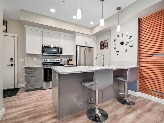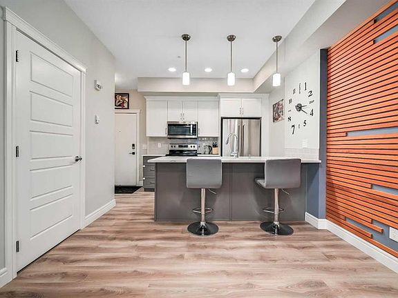 Exceptional, turnkey value in this well upgraded unit in desirable Seton! Just steps to all amenities including restaurants, Seton YMCA, scenic walking & bike pathway system, Cineplex VIP, nightlife, shops, big box retailers, & the South Health Campus medical center! Leave the car at home and enjoy the relaxed atmosphere of Seton away from the hustle and bustle of Calgary's core. Like new unit, with a modern open plan and tall 9' ceilings. Substantially upgraded from the standard builder's package with deluxe stainless-steel appliances, quartz countertops throughout, stained wood feature wall, & built-in fireplace with tile clad full height surround! Upgraded full bathroom with custom marble style tilework & full body shower jets. Quiet, main floor unit with ground level patio ideal for pets! Luxury vinyl plank flooring throughout the unit, with designer chosen colors. In-suite laundry + visitor spots. Ample parking for visitors & free street parking is nearby & abundant. Well managed building with very low condo fees, just pay electricity! Incredibly affordable home in a fantastic location in Seton, or a smart investment for someone looking to capitalize on proximity to the South Health Campus, Calgary's newest and state-of-the-art medical center.