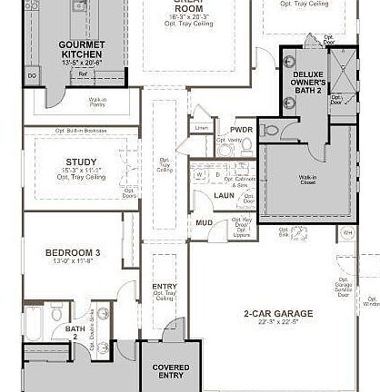 The ranch style Cassandra plan showcases an open layout with a great room, a breakfast nook and large gourmet kitchen. The owner's suite is adjacent, and boasts a generous walk-in closet and an attached bath with a walk-in shower. Two additional bedrooms flank a full bath, and a nearby private study. Loaded with upgrades: 3-car insulated garage, 10 foot ceilings, quartz countertops throughout, tile/wood laminate in all traffic areas.