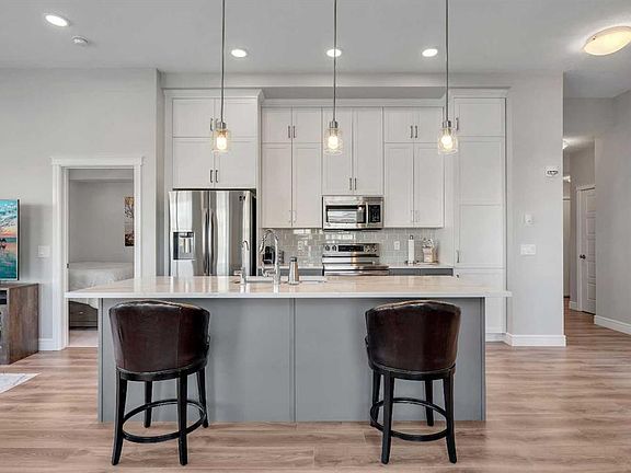 Top-floor corner unitOpen layoutModern kitchenQuartz countertopsCeiling-height cabinets and pantryStainless steel upgraded appliancesIn-sink water filtration system