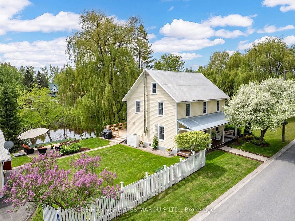 Step back in time and fall in love with this historic gem nestled in the heart of the charming village of Williamstown. Built in 1884, this 4-bedroom, 2-bathroom home sits gracefully along the winding shore of the Raisin River, offering a peaceful lifestyle full of timeless beauty and storybook surroundings. Full of rustic charm and character, this home invites you to imagine the stories it could tellif the walls could talk. Inside, youll find a spacious layout with updated hardwood flooring throughout, a generous kitchen with plenty of cabinetry, a tranquil living room with a wood burning stove and a main floor family room warmed by a cozy pellet stove with views of the serene backyard. The main floor also features a full bathroom with a vintage clawfoot tub that also accommodated the laundry and a private officeperfect for remote work or creative pursuits. Upstairs, four well-sized bedrooms and a second bathroom with a walk-in shower provide comfort and functionality for the whole family. Step outside to enjoy the immaculate yard, filled with vibrant perennial gardens, a large deck overlooking the river, a charming white picket fence, a she shed/workshop, and a paved driveway. The front deck is the perfect spot to unwind on the swing with a glass of wine and take in the peaceful village views as the sun sets. Located just across from the historic grounds of Ontarios oldest fair, this one-of-a-kind home is a beautiful blend of heritage, charm, and tranquil country living. This well loved home is looking for its next keeper.