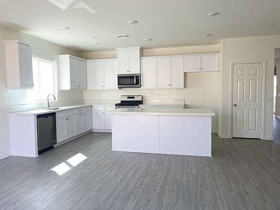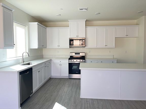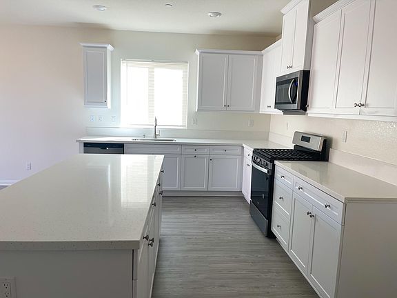 The master suite features a double sink, separated bath and shower, and a walk-in closet. Carpeting in all rooms and vinyl throughout the kitchen. The kitchen features granite countertops with a large island and a walk in pantry.