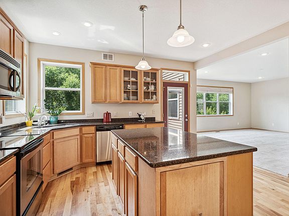 Largest Farmington home on the market and only for $450k! This turn-key two story offers a main floor w/ a bright & spacious living room w/ gas fireplace, an office w/ elegant French doors, newly refinished hardwood floors, & a center island kitchen w/ Cambria countertops, stainless steel appliances, & a tall maple cabinets. Upstairs features a loft area & 3 bedrooms on the same level. The primary bedroom ensuite is generously sized w/ a vaulted ceiling, walk in closet w/ custom shelving & a private bathroom, complete w/ a separate tub & shower. The walk-out lower level consists of a large family room, a 4th bedroom, a 4th bathroom, a flex room & ample storage space. Additional features include new carpeting, fresh paint, six-panel wood doors, 3 zoned heating, a charming paver patio & a spacious maintenance-free deck that overlooks the fully fenced backyard. Ideally situated just steps away from Meadowview Park & surrounded by miles of paved walking trails. Don't miss this opportunity!