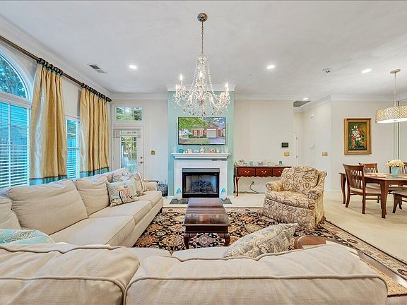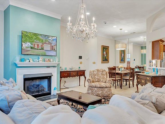 Welcome to this beautifully updated townhome, where comfort meets timeless design and all desired amenities located on the entry level. The entryway opens to elegant crown molding and classic parquet flooring, leading into a formal dining area. The spacious living room features 9-foot ceilings, abundant natural light, and a cozy new gas fireplace insert, creating a warm, open feel that flows into a charming breakfast nook and additional dining space. The kitchen is designed for both style and function, offering hardwood floors, sleek stainless steel appliances, custom cabinetry, and a modern tile backsplash. A discreetly integrated laundry area is hidden behind matching cabinets. The entry level spacious primary suite with plenty of sunlight and includes a walk-in closet and an en-suite bathroom with a dual-sink vanity. The second bedroom is also on the entry level and can serve as a guest bedroom, home office, or family room, just down the hall from the second full bathroom.