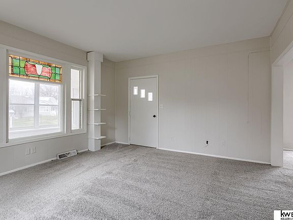 This charming single-family home, built in 1900, offers 3 bedrooms and 1 bathroom. With a total living space of 1,464 square feet, it sits on a generous 8,712 square foot lot. The property features a delightful enclosed front porch, perfect for enjoying the outdoors. Inside, you’ll find original stained glass decorative windows that add character to the home. The hardwood floors in the formal dining room exude warmth and charm. The kitchen, equipped with a range oven, refrigerator, dishwasher, disposal, and microwave, is both functional and inviting. The primary bedroom, located on the main floor, boasts wall-to-wall carpeting and window coverings. Two additional bedrooms on the second floor offer ample space for family or guests. The central air conditioning keeps the interior comfortable during warm Nebraska summers. The property is conveniently situated in the city of Blair, with easy access to nearby amenities and schools.