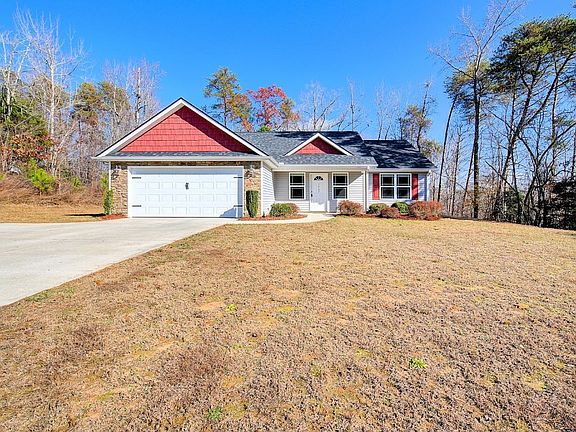 Discover a perfect retreat with this one-owner home, nestled on nearly 2 acres. The property strikes an ideal balance between quiet rural living and easy access to nearby Greenville, Easley and Pickens. Built in 2015, this one-story residence offers a blend of comfort, style, and privacy. Boasting brand-new luxury vinyl plank floors throughout, the home also features a 2-car attached garage…arched doorways…walk-in laundry room…ample cabinet and counter space…open concept living area with cathedral ceiling…and a primary suite with tray ceiling, dual vanity, separate water closet, walk-in shower & garden tub. This property offers plenty of room for outdoor enjoyment—whether you’re unwinding on the covered back porch or exploring the natural surroundings. The stone and vinyl exterior ensures minimal upkeep, while the private, location offers an escape from the everyday hustle. Low maintenance and no HOA! Whether you’re looking for a cozy family home or a peaceful getaway, this property is ready to welcome you. Schedule your showing today!
