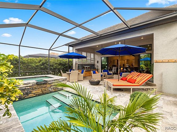 Step out to the expansive travertine lanai—your ultimate outdoor oasis. Savor the soothing sounds of the planter waterfall, cook in the summer kitchen with grill, stove, sink, and refrigerator, or unwind by the outdoor fire pit under ambient decorative lighting that enhances the tropical ambiance.
