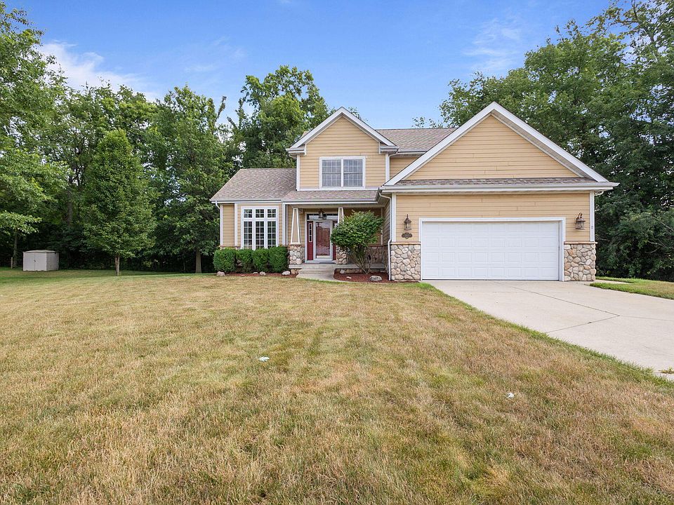 No disappointment only excitement with this 2 story home in desirable Rustic Hills Subdivision and Critchfield School District. Be ready for the school year in this immediate possession home. 9ft ceilings adorn the main floor as the light shines through the large windows. Family room offers beautiful wood floors, a gas fireplace, dry bar and wine fridge overlooking the private back yard. Upper level offers 3 bedrooms and 2 full baths, while the finished walk out basement offers an additional full bath, great room, kitchenette or craft area, along with 2 additional rooms previously used for bedrooms (only small windows in each room). Over 3000 sq ft of living area and an oversized 2 car garage. Newer roof is just a bonus to this home situated on a quiet Cul-de-Sac.