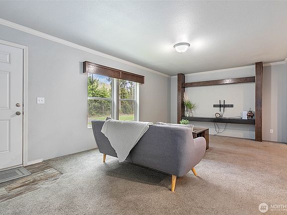 This charming 3-bedroom, 2-bathroom home sits on a spacious 5-acre lot, offering privacy and plenty of room to roam. The open floor plan features a bright living area, a well-equipped kitchen with ample cabinetry, and a cozy dining space. The primary suite includes a private bathroom, while two additional bedrooms provide flexibility for guests or a home office. Outside, enjoy serene country views, mature trees, and endless possibilities for gardening in your fenced back yard. Conveniently located with easy access to Bellingham and Burlington, this property is perfect for those seeking a peaceful rural lifestyle with modern comforts.