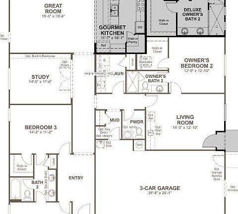 Part of the Modern Living™ Collection, the Darius provides a sophisticated and accommodating ranch-style layout. In addition to a lavish owner's suite—with a roomy walk-in closet and attached double-sink bath—this home includes a second owner's suite with an adjacent living room, perfect for multi-generational living. For a more complete secondary residence, a separate entrance to the living room on the side of the house, in addition to a kitchenette with a sink, and cabinets. An added laundry closet completes this suite!. You'll also enjoy a 3-car garage, a study, a great room with an adjacent covered patio—featuring multi-slide doors—and an inviting kitchen with a generous island, built-in pantry, dining nook and beautiful gourmet kitchen! Don't wait on this!