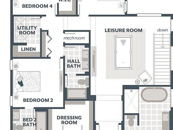Centralized gourmet kitchenSpacious dressing roomGrand suiteMulti-purpose roomDual vanitiesFree-standing tubFrameless shower