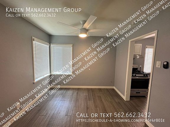 SPACIOUS 1 BEDROOM FIRST FLOOR UNIT PLUS BONUS HALLWAY NOOK AND EXTRA STORAGE CLOSET SEPARATE KITCHEN WITH COZY BREAKFAST AREA AMPLE CLOSET AND CABINET SPACE THROUGHOUT FULL-SIZE CLOSET IN BEDROOM ADDITIONAL BUILT-IN CABINETS IN HALLWAY AND BONUS NOOK HARDWOOD FLOORS THROUGHOUT MODERN KITCHEN WITH NEW CABINETS AND STONE COUNTERTOPS BRAND NEW REGULAR BLINDS THROUGHOUT UNIT CEILING FAN TO HELP KEEP THINGS COOL STREET PARKING ONLY ON-SITE LAUNDRY ROOM Owner pays for gas, water & sewage 15 minutes to the 710 and/or 405 freeways 1520 minutes to LBCC and/or CSULB RENTAL CRITERIA: 650+ FICO score 2.5x income vs. rent No evictions on record 1 year at current employment minimum Credit application fee: $45 PLEASE BE AWARE OF RENTAL SCAMS: We caution all applicants to thoroughly research any potential rental listing and perform appropriate due diligence. All deposits, rents, and rental agreements should only be handled directly with Kaizen Management Group. If someone asks you to meet with cash or requests payment via Western Union, MoneyGram, or prepaid Visa cards, these are potential signs of rental fraud. Large Windows New Windows Remote Operated Ceiling Fans Stainless Steel Appliance Vaulted Ceilings Water