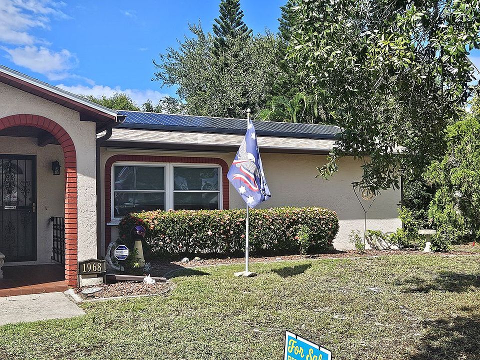 Spacious, well-maintained home in a great neighborhood! Brand new roof installed in July 2025. The solar system is paid in full so you can enjoy a $30 monthly electric bill! Recent upgrades include a new A/C system, a walk-in tub/shower combo, a large paver patio equal to the size of the screened in patio, and whole yard fencing with two gates. The screened in patio runs the entire length of the home and a 4 person hot tub is included. Also includes hurricane panels and newer appliances (washer, dryer, refrigerator, over the range microwave, electric range, and dishwasher). A large steel shed is in the backyard. Furniture is available as well.