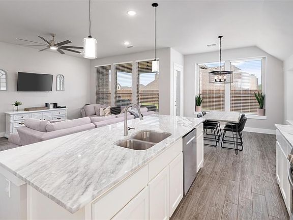 Gorgeous custom High Five home in De Berry Estates. Beautiful walk up. Show stopping kitchen ~ gorgeous backsplash, countertops and island with dual sinks and seating. Pantry. Stainless steel appliances. Open floorplan. Master bedroom has room for seating area. Amazing master bath with dual sinks, window seat, and gorgeous frameless shower with shelves. Covered back patio with ceiling fan overlooks the fenced in back yard.