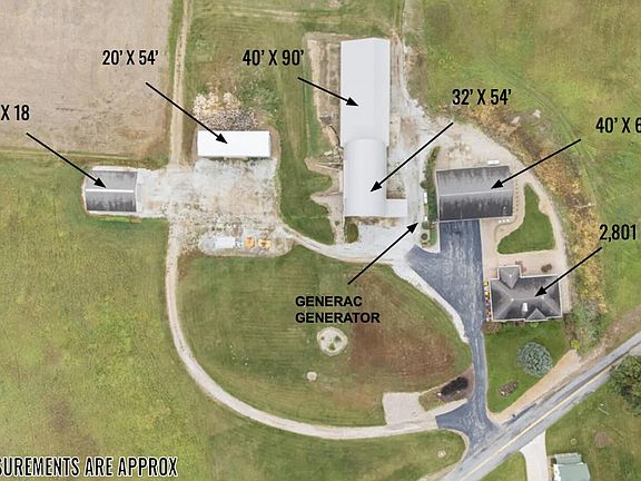 - Additional structures: Second Garage, Barn(s), Pole Barn