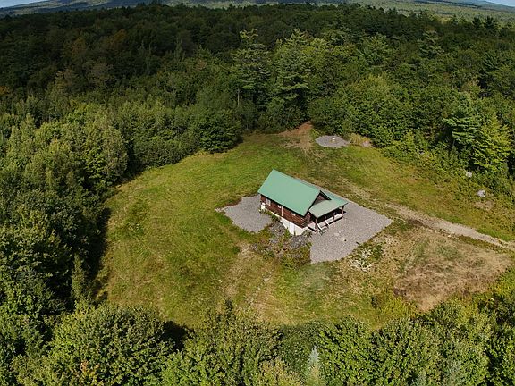 The cabin is insulated and equipped with modern well and septic systems. It sits on a clean, dry, full concrete foundation with a walk-out basement, providing excellent storage or potential for expansion. Currently heated by a pellet stove, the cabin would require minimal modification for comfortable four-season use or living. A covered porch runs along two sides, offering a quiet place to enjoy the outdoors.
