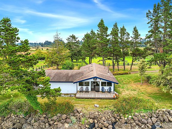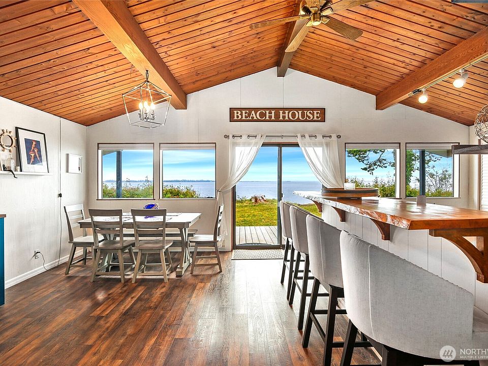 Live life at the water's edge—wake up to the soothing sounds of waves and end your day with glowing sunsets from this 3-bed, 1.75-bath rambler, set on 5.75 acres with 876 feet of private waterfront. Modern coastal vibes flow throughout with LVP flooring, classic subway tile in the kitchen and baths, and airy vaulted tongue-and-groove ceilings that fill the home with natural light. Roomy garage for all your beach toys. This could be your full-time coastal retreat or a unique short term rental opportunity. (Also available next door, 3 bed, 3 bath, 2,868 sqft home on 10 acres. Bundle both properties to create one extraordinary waterfront compound with nearly 16 acres, two homes, and over 1,700 feet of shoreline.)