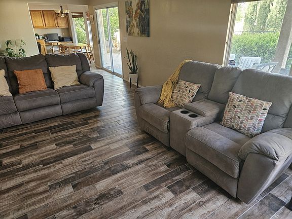 Gas fireplaceMountain viewsBrand new pool heaterOpen floor planDouble flagstone patiosRainbow playsetRecessed lighting