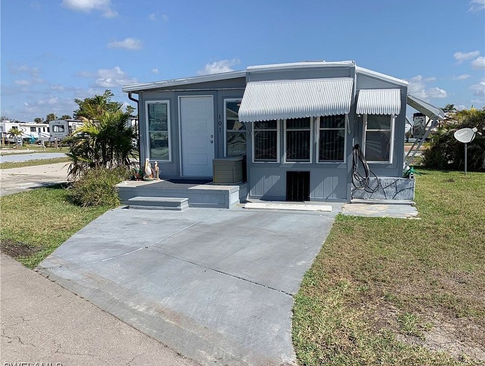 Enjoy the tropical lifestyle at Palmetto Palms RV 55+ Condo HOA, where you own the land. This 1-bedroom, 1-bath home is just a short walk to the pool, clubhouse, and tennis courts. Features include tile floors, new carpet, a spacious kitchen, built-in storage, a mini-split A/C, and an upgraded electrical system (2024). The home also has hurricane impact windows, metal roof and James Hardie fiber cement panels (termite and rot proof) for total peace of mind.