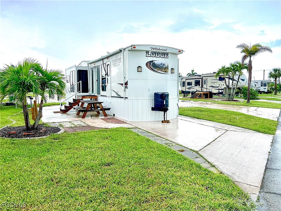 Live your Florida dream! Fantastic lot including a 2012 Wildwood Lodge Park Model. New electric in 2023, 4pt. inspection, and survey on file. New skirting around RV in August 2025. Lot and RV are approved by the HOA and ready to move in! Palmetto Palms RV Condo, a 55+ community with an HOA. Pool, Tennis, Pickleball, and many other community amenities and activities. This is a Fantastic community where you OWN Your Land with water, sewer, cable and electric available. Park your RV, or place a new manufactured home on the lot! Palmetto Palms offers Boat Storage and is biking or walking distance to Bunche Beach. So close to Fort Myers Beach and Sanibel Island, with endless opportunities for boating, beach outings, dining, and so much more. Embrace the SW Florida tropical lifestyle at Palmetto Palms RV!