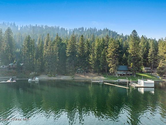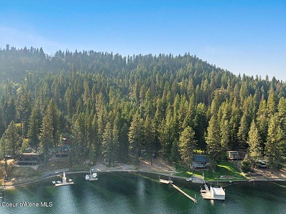 Step back in time to this quintessential lake home nestled onto two separate parcels comprising 100' of gentle, lawn to water's edge frontage on Coeur d'Alene's Powderhorn Bay. This 1980 daylight rancher offers breathtaking lake and forested views from the spacious living area and kitchen. Entertain with ease on the open deck and attached 12X16 screened porch - complete with pass-through window from the kitchen for serving up meals and a commercial grade refrigerator to keep the beverages chilled. Main floor primary En-suite, open floor plan and large walk-in pantry. Walk-out basement offers 3 bedrooms, a bath, and a cozy family room. Single car garage/storage in the basement. New roof in 2023. So many possibilities; Enjoy a real lake cabin, update this vintage home, or start fresh and utilize both parcels. Dock, swimming beach, gated road, and a feeling of seclusion. The same family has enjoyed this special property for over sixty-five years - Now it's your opportunity!
