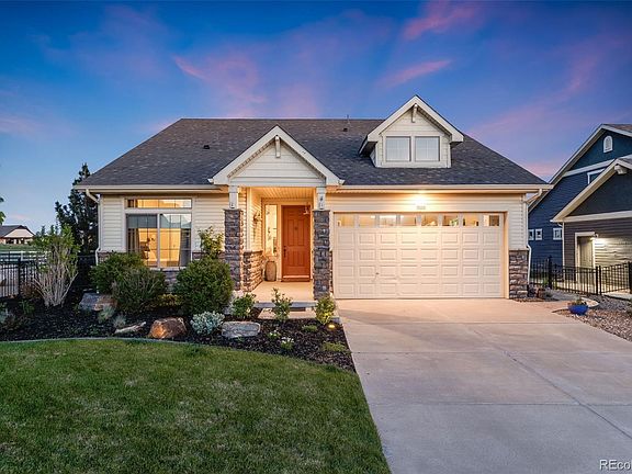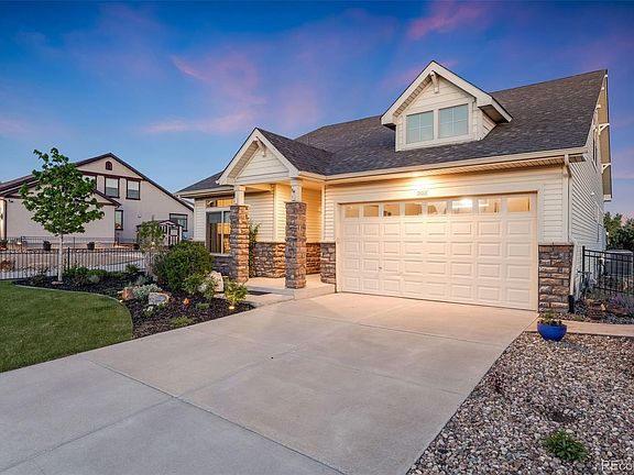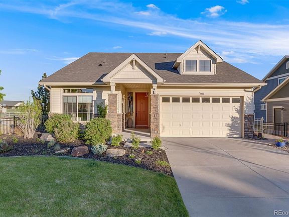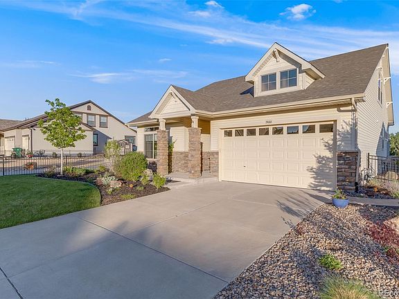*55+ Community* Step into a spacious entry foyer that opens to an airy, open-concept floor plan with soaring ceilings and an abundance of natural light. The heart of the home is a chef’s dream—featuring a generous kitchen with an oversized island, ample cabinetry, and seamless flow into the dining area and cozy living room. The living space is highlighted by a stylish coffered ceiling and a modern gas fireplace, perfect for entertaining or relaxing. The main floor hosts a luxurious primary suite with its own coffered ceiling, spa-like en suite bathroom, and a spacious walk-in closet. A second bedroom and full bathroom provide flexibility for guests, while the main-level laundry room adds everyday convenience. Upstairs, a large family room and flexible loft space await—ideal for a home office, creative studio, or even a third bedroom—alongside a convenient half bath. Enjoy Colorado living at its finest with a private backyard that backs to a scenic golf course, complete with a spacious patio perfect for outdoor dining or simply taking in the view. Located in a premier 55+ community, residents enjoy resort-style amenities including a clubhouse, fitness center, swimming pools, pickle ball courts, and more.