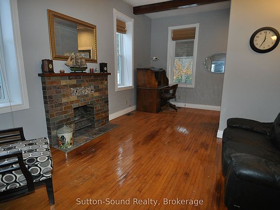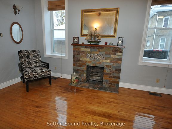 This charming triple-brick home is filled with character and boasts a wonderful view overlooking Kelso Beach and Georgian Bay. The main floor features soaring 10-foot ceilings, large windows that fill the space with natural light, and updated bathrooms. The kitchen offers plenty of cupboards, a built-in eating bench, pantry, and convenient dog door leading to a fenced pen. Two of the bedrooms include walk-in closets, and the large three-season room is the perfect spot to relax and watch the world go by. Enjoy stunning views from the oversized back deck and upper-level windows.The home has been well maintained with numerous updates, including a 2021 furnace, owned hot water tank, 2010 asphalt shingle roof with a durable metal roof on the back portion, updated electrical (2008) and plumbing (2007), and R50 attic insulation. Windows are 2010 or newer, and the fireplace adds charm though it is decorative only. The basement has never had water issues, and there's plenty of parking and a convenient walkout. This property combines historic charm with modern comfort and a spectacular setting-truly a must-see!