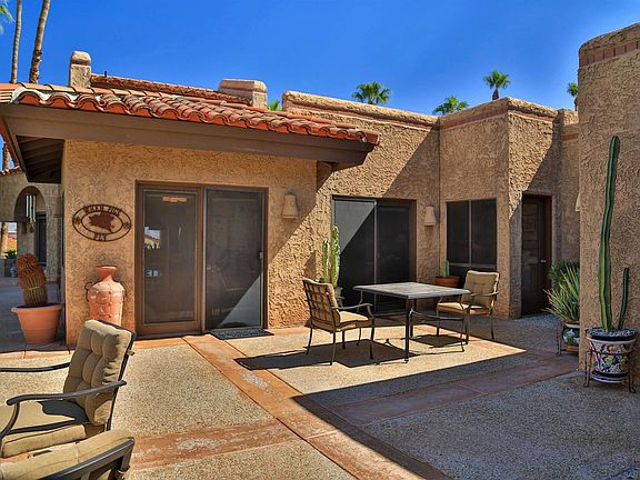 Located at the end of a cul-de-sac this nicely upgraded home has sweeping views of the valley and mountains. The open floor plan has high ceilings with tile floors throughout, granite countertops, and two large outdoor areas for dining, entertaining, or soaking up the views. You will feel right at home in the gated golf course community of Rams Hill. Located on the South side of town, you are away from the village lights for superior star watching. Offered mostly furnished so you can enjoy from day one!