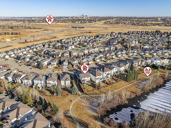 Walkout backing onto a pond and next to a walking trail! This 1,913 sq ft two story home with a fully finished walkout basement, has 4 bedrooms upstairs, and 4 bathrooms. Sunny southwest backyard is meant to be enjoyed as it backs directly onto a scenic pond and walking trails. The main floor is bright and open, featuring a spacious living room separated by the dining area with a 3 sided gas fireplace, and a maple island kitchen with pantry. Step out onto the SW facing deck from the dining room and take in the views—perfect for enjoying summer evenings. Upstairs, you'll find four generously sized bedrooms, including a master bedroom suite with a walk-in closet and full ensuite. The recently developed walkout basement, adds a fourth full bath, and a huge rec room, wet bar with direct access to a private patio and beautifully landscaped yard. Upgrades include new shingles (2021), high efficient furnace (2024) and more. Quiet street minutes away from shopping, restaurants and numerous walking trails.