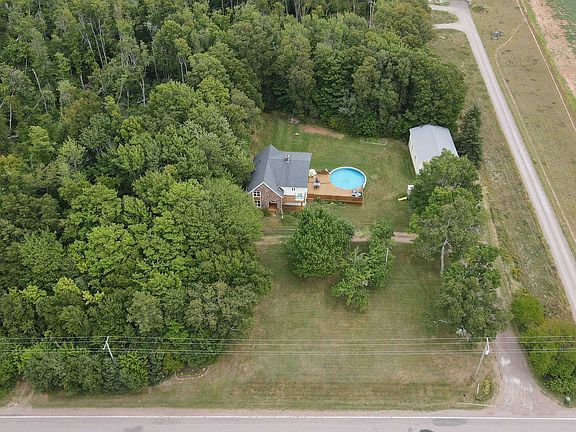 Welcome to this well-maintained and spacious family country home located on a private 1.75 acre lot just minutes from the scenic Scales Pond. Set back from the road with a circular driveway, this property offers the perfect balance of peaceful rural living and modern convenience. Step up on a new wooden patio in 2021 inside the attractive stone arch to a bright, welcoming foyer leading to a functional main floor layout featuring a large eat-in kitchen with ample cabinetry, wall oven, countertop stove, double sink, and a center island with seating for three. The main level also includes a comfortable living room, home office or 5th bedroom (just add a closet), laundry room with a laundry chute, and a full bathroom. Upstairs you’ll find Main bathroom, a nursery/craftroom, three generous bedrooms, including a spacious primary suite with double closets, whirlpool tub, ensuite bath, and private deck access the perfect place to enjoy your morning coffee. The other two bedrooms include built-in closet organizers, and the upper landing offers a flexible bonus space. Outside, enjoy the summer months in the above-ground pool with a large attached deck, ideal for family fun and entertaining. The 40’ x 28’ detached garage features 16-foot ceilings, is partially heated, and wired for electricity perfect for a workshop, storage, or home business.. Most windows and the roof were replaced approximately 7 years ago, ensuring comfort and efficiency for years to come. Additional features include: Full poured concrete basement with cold room and sump pit (no pump), electric hot water tank (6 months old), plumbed for central vacuum (attachments not included), well-treed backyard for privacy and natural beauty. This move in-ready home offers space, comfort, and great value in a tranquil, family-friendly setting. Don’t miss your chance to make this exceptional property your own!