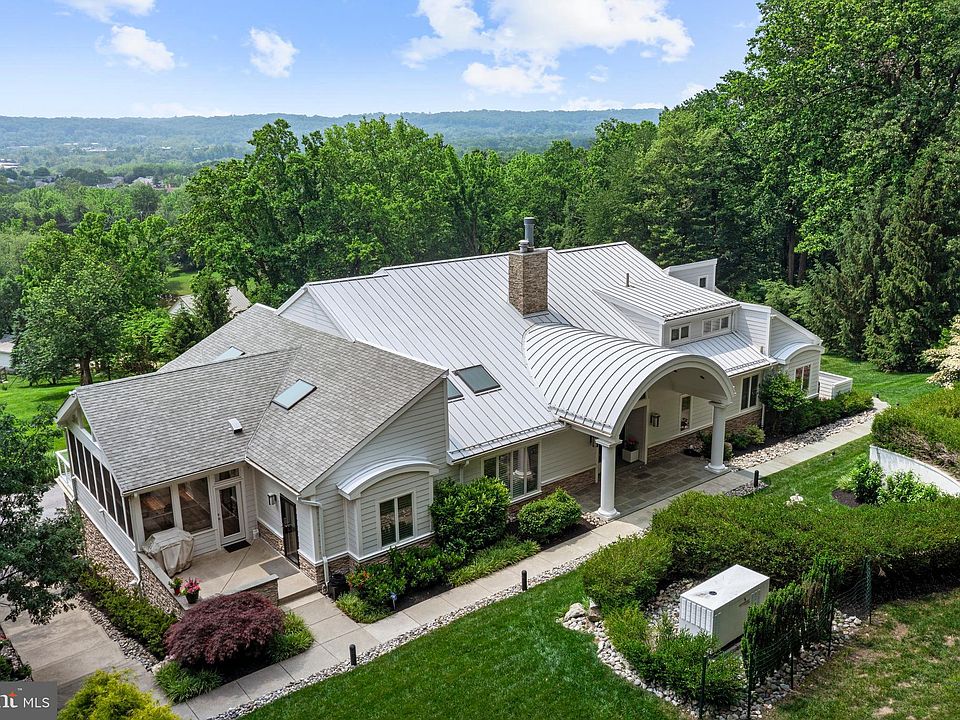 Nestled atop the serene and picturesque landscape of Valley Forge Mountain, this architectural masterpiece awaits. Occupying five bucolic,private acres, this rare gem offers an unparalleled living experience within the esteemed Tredyffrin/Easttown School District. With 6,635 square feet of completely renovated, sensational living space, this residence is a testament to exquisite craftsmanship and sophisticated design. Upon entry, a grand foyer welcomes you into a breathtaking great room, distinguished by its soaring 22-foot ceilings, custom Marble floors, and an oversized marble fireplace. An abundance of windows throughout, and French patio doors bathe the space in spectacular natural light, offering panoramic vistas, stunning views of the valley and the surrounding natural beauty. Step through these doors onto a gorgeous deck that overlooks a spectacular backyard oasis, a perfect setting for tranquil relaxation or grand-scale entertaining. The art of entertaining is perfected in the oversized, beautiful dining room, which flows seamlessly into the heart of the home: the stunning gourmet kitchen. Prepare to be captivated by this extraordinary, sun-drenched culinary haven. Featuring high ceilings with two skylights and two oversized Carrera marble islands, this state-of-the-art kitchen is a chef's dream. Top-of-the-line appliances include a 6-burner Wolf dual range with griddle, three Wolf ovens, a warming drawer, a built-in Sub-Zero refrigerator, an additional under-counter Sub-Zero refrigerator and freezer, a wine refrigerator and icemaker in the bar area, and a walk-in pantry. Adjacent to the kitchen, an enclosed sun porch, or three-season room, offers a tranquil retreat with expansive views through its oversized windows. For more casual gatherings, a sensational family/theatre room off the kitchen boasts two-level seating and custom built-ins. The magnificent first-floor primary suite is a sanctuary of its own, featuring high ceilings, an enormous walk-in closet, and an additional large sitting room with a gorgeous private deck. The convenience of a spacious laundry room with custom built-in cabinetry is also found on this level. The en-suite master bathroom is a study in luxury, with stunning Travertine floors, an oversized double shower , a wonderful Jacuzzi tub, a gorgeous double sink vanity, custom cabinetry, linen closets, ample storage, and his-and-hers water closets. The second floor reveals a charming balcony overlook and a south-facing deck that spans the entire length of the floor, offering truly panoramic views. This level hosts a second magnificent master suite, complete with a large walk-in closet and a gorgeous master bath. An additional beautiful office or bedroom with deck access completes this floor. The beautifully designed lower level extends the living space with three additional large bedrooms and a new, gorgeous bathroom. This level also features a separate laundry room, a workout room, wine storage, and a sauna. An enormous family room with a built-in wet bar and custom bookcases provides another fantastic entertaining space. From here, an additional oversized office with two sets of French doors opens out to the beautiful backyard. This exceptional property also includes a six-plus car garage, as well as an additional storage garage for lawn maintenance equipment. With its stunning landscapes and flourishing gardens, this home is truly a sensational place to call home and a perfect venue for creating lasting memories.