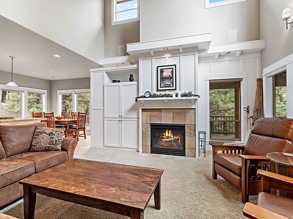 This furnished 2540 square foot house is located in River Wild at Mt. Bachelor Village in Bend, Oregon. With quick access to Mt. Bachelor and an abundance of outdoor activities, this home boasts 3 bedrooms and 2.5 bathrooms, with the primary bedroom and master bath conveniently located on the main floor and a second primary bedroom upstairs. The basement features a large finished bonus room that could be used as a game room, office, home theater, or fourth bedroom, as well as a separate large storage room. The main floor also features a wrap-around porch and a large great room with a cozy gas fireplace, perfect for relaxation and entertaining quests. One of only a few homes in River Wild with an attached garage. Association amenities include an outdoor pool, hot tub, and a 2-minute walk to the beautiful Deschutes River Trail. Short-term vacation rentals are allowed, making this an ideal investment property or a vacation home for those who enjoy the outdoor lifestyle of Bend, Oregon.
