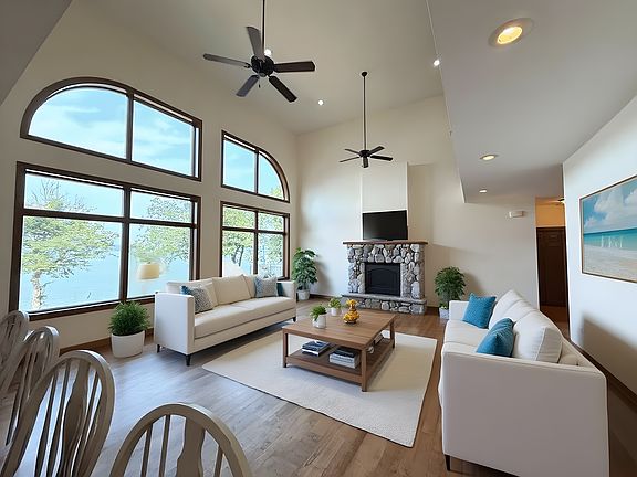 Crystal-clear waterMain floor primary suiteVaulted ceilingsSpacious bedroomsSpacious kitchenLakeside deckFull kitchens
