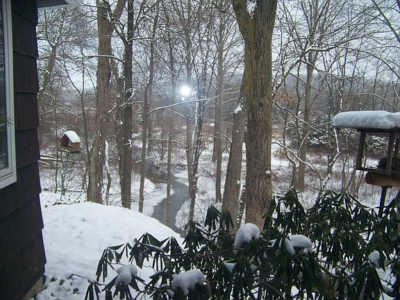 Every gardners or artists dream property. This ranch home offers a large living room and dining room for entertaining, state of the art Buderus heating system, natural real hardwood floors, wood burning fireplace and fully equipped kitchen. Nothing compares to these westerly sunset views of the creek and neighboring golf course. Convenient separate office with its own entrance for any home business or as 3rd bedroom. Enjoy many herb gardens as well as blueberry, raspberry and blackcurrant bushes. Home is on a quiet country lane.