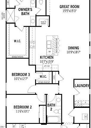 Open layoutDesigner kitchenSpa-inspired bathFlush breakfast barExpansive great roomDining areaNatural light