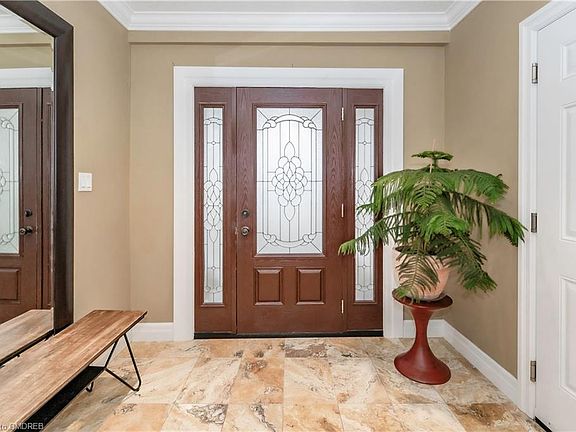 One of a kind, stunning bungalow featuring approximately 2500sq.ft. of recently remodelled living space and spectacular, professionally landscaped outdoor oasis! The elegant stucco exterior, covered porch with decorative pillars, stamped concrete double driveway and double car garage are the focal points of its curb appeal. The mature, Muskoka-like rear yard boasts a brand new hot tub, massive patio, custom deck, walkways and abound of natural stone accents! Meticulously crafted interior will impress, showcasing modern, white kitchen with imported travertine flooring, main floor master suite, luxurious, spa-like bathrooms and fully finished lower level offering 2 additional bedrooms, 2 baths and an open concept recreational area with walk-out to backyard retreat! Enjoy the location and exceptional features of this spectacular residence!
