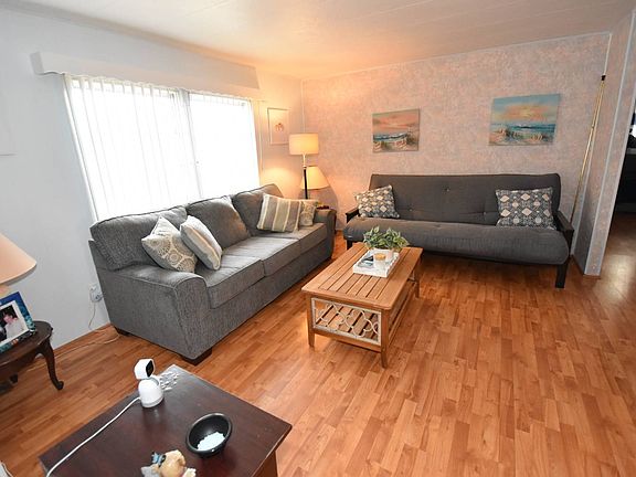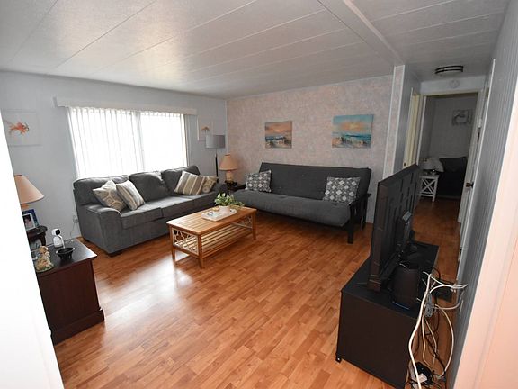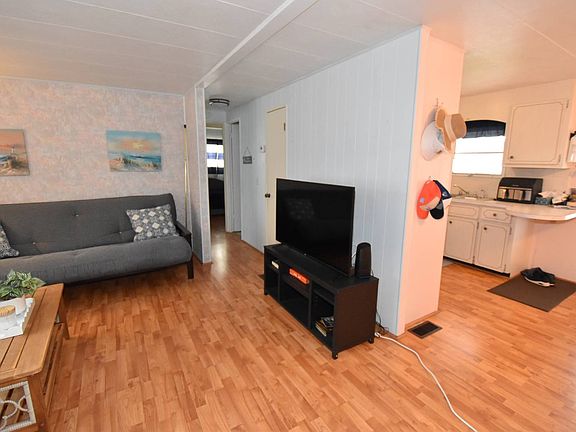 Beautiful open floor plan centrally located in the park! New roof over!, large A.C. unit, new windows in the Florida room, laminate flooring throughout, new electrical panel, furniture stays with the exception of the Florida room, long carport, large shed, priced to sell!!