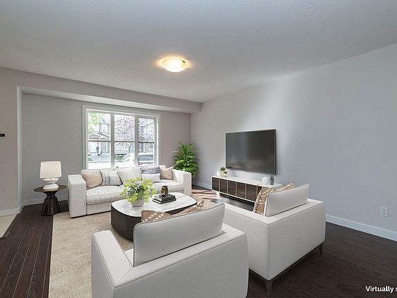 Backing the ravineEat-in kitchenCorner pantryRich espresso cabinetryBright living spaceSouth-facing windowsNatural light