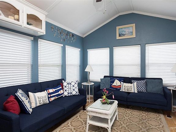 Just listed one bedroom with one bath park model in Long Island Village. Inviting covered porch. Property is being sold fully furnished. Gated community located just across the Intracoastal Waterway via a swing bridge from Port Isabel, Texas. Featured amenities such as an 18-hole, par 3 golf course, outdoor and indoor swimming pools, jacuzzis, volleyball, basketball, shuffleboard, exercise room, billiard room, miniature golf course, library, laundry, and tennis courts. Community provides a boat ramp for residents to launch their water craft directly into the Intracoastal Waterway.
