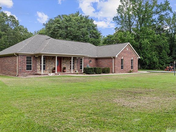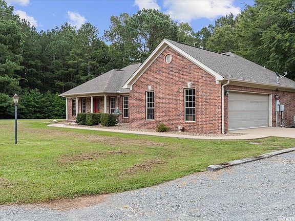 Well kept 3 BR, 2 bath brick & rock home. Gas fireplace, original heat/air and hot water heater. New roof 2018. 40 x 30 metal shop and 20 x 20 shed for two cars plus camper shed. Partly fenced with pond. Surrounded by 66 acres of beautiful woods with creek running through it.