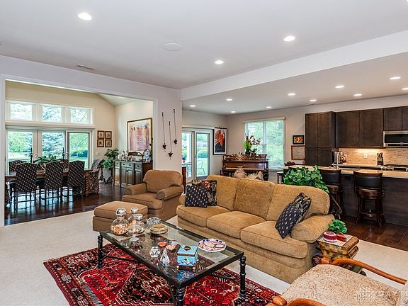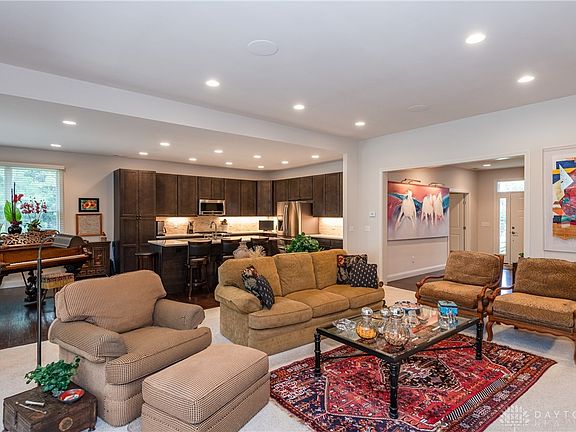 Welcome to this stunning custom-built home located in the highly sought-after The Cove at Settler's Walk of Springboro, conveniently situated near a variety of shopping & dining options. This is not your standard builder-grade property; every inch is upgraded to perfection! This beautifully designed three-bedroom, three full-bath residence features a grand oversized entry and an open concept living space that invites you in. The spacious living room seamlessly connects to a magnificent kitchen, complete with a custom island featuring quartz countertops and a striking stone backsplash. Built-in cabinetry and stylish serving bar make entertaining a true pleasure. The large dining room boasts custom Pella sliding doors with tinting for sun protection, leading to an expansive patio outfitted with a motorized sun setter shade awnings-perfect for outdoor gatherings. The one-of-a-kind primary en-suite bedroom offers an enlarged custom dressing room and a luxurious bathroom that exudes a spa-like atmosphere. Lots of additional storage closets throughout. An additional bedroom currently serves as an office, while a third en-suite bedroom is ideal for hosting family and guests. A bonus three car attached garage boasts a full wall of custom storage cabinetry.