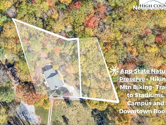 Escape to your own mountain retreat with this charming log cabin tucked beside the Appalachian State Nature Preserve, where adventure and tranquility meet. Step outside your back door and onto a network of hiking and mountain biking trails that wind through the preserve and connect directly to App State’s baseball stadium, as well as getting you to campus, the football stadium and downtown Boone. This authentic log home offers the perfect blend of rustic warmth and modern comfort. The open-concept living, dining, and kitchen area welcomes you with hardwood floors, vaulted ceilings, and a grand stone fireplace—the heart of the home and the perfect gathering place after a day of exploring. The kitchen features updated appliances and plenty of counter space for entertaining or cozy nights in. Designed for easy living, the home’s main level layout provides seamless flow and comfort, while the unfinished basement offers endless potential for expansion, storage, or a recreation space. Once a highly successful short-term rental, this property offers incredible investment potential, a full-time residence, or the ideal mountain getaway. Convenient to town yet peaceful, private, and surrounded by nature, this is Boone living at its best — where the trail truly begins at your doorstep.