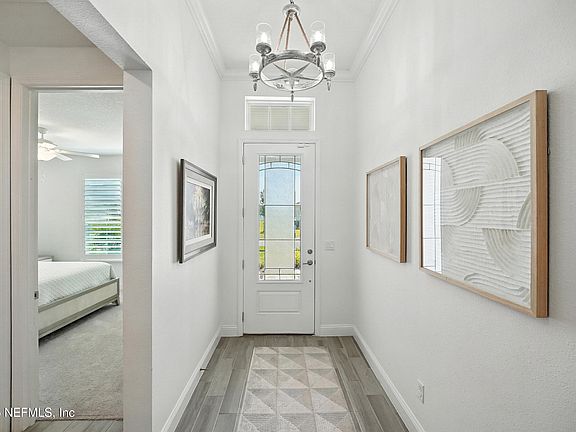 OPEN HOUSE SAT. OCT. 4TH 12PM-2PM! This immaculate 4 bedroom, 3 full bath home is located in the sought after area of Saint Johns county in Silver Landing at Silverleaf. This beautiful home sits on a corner lot with a large driveway and brick pavers leading to your 3 car garage! Open floor plan with tile wood-look floors, quartz countertops, large kitchen island, stainless steel appliances, water softener, spacious living room with tray ceilings, formal dining room, upgraded shutters and remote controlled privacy shades. Primary bath has a garden tub with separate shower and spacious walk in closet. The backyard has a screened in patio and partial water views to enjoy your morning coffee! The amenities include a pool, lap pool, splash pad, parks, pickleball, tennis, trails and residents club. A-rated schools, a new Publix going in nearby. Only a short drive to the Durbin Pavilion with a movie theater, shopping and restaurants. All of this with a low HOA and no CDD! Come see it today