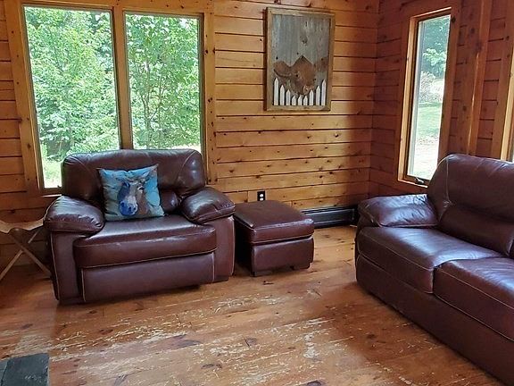 This stunning log home with a custom built barn and established farm all sitting on over 7 acres of land is just the start. This beautiful property offers three bedrooms, two full baths, open concept living with cathedral ceilings. The living room wood stove will keep you cozy on cold New England nights. Kitchen opens to dining room with a peninsula and newly installed counter top allowing for optimal convenience when entertaining. Loft master bedroom with walk-in closet and jacuzzi tub for relaxing after the farm chores are done. Basement partially finished with laundry room, pellet stove, additional rooms currently for in home office, family room, and guest room. The barn is equipped with water, electricity, and currently has 6 existing matted stalls with potential for more. Complete with roughly 2 acres fenced in including no climb cattle and round pen panel. Fenced in netted area for chickens and ducks. All this with close proximity to NECCA, area amenities, and highway access.