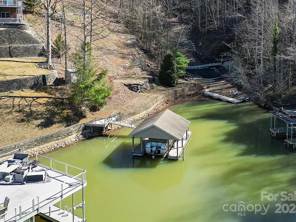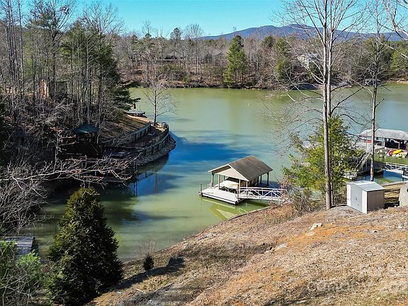Amazing year round lake and mountain views! This lot is ready for your full time or vacation home. Driveway has been cut in with retaining wall. Take the path to lake where you'll find a beautiful covered floating dock with lift and sturdy sea wall. Just add a house and you are ready to enjoy all the beauty of Lake James. This lot is served by a community well system and already has the septic for a 4 bedroom home installed as well. County water will be installed near end of summer 2025. And golf enthusiasts will enjoy the adjacent Marion Lake Club for golfing. Just 15 minutes to Marion.