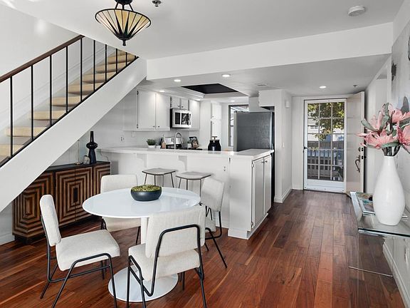 Incredible location in central Encinitas with ocean and sunset views! This stunning 2 bedroom end-unit condo features two updated bathrooms, vaulted ceilings and a second story loft that has a multitude of potential uses. The luxury updating includes quartz kitchen counters, walnut floors, high-end Berber carpets, and replaced forced air heating, air conditioning and hot water heater units. The full sized in-unit washer and dryer compliment the upgraded kitchen appliances. The community of West Hampton cove features two hot tubs, a bike storage area and is close to the Ecke YMCA, downtown Encinitas 101 corridor, featuring some of North County San Diego's hottest dining and shopping, Moonlight beach, train station and more. Carport parking with additional storage plus parking passes.