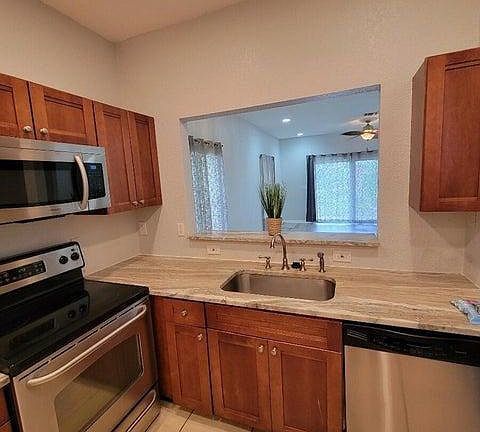 Impact windowsKitchen with granite countertopsUpdated bathroomsStylish flooringStainless steel appliances